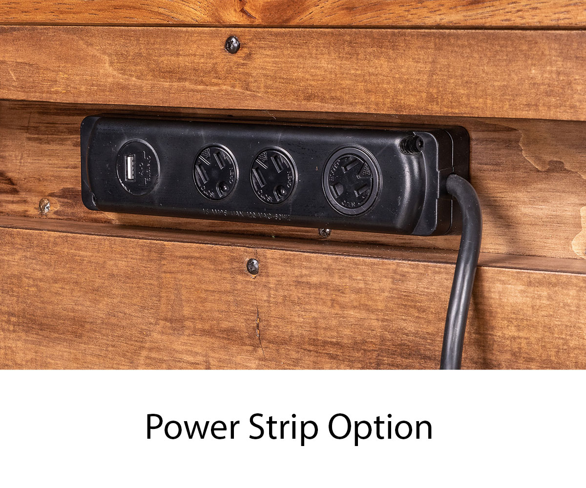 • Power strip with one USB port and three 110 volt outlets