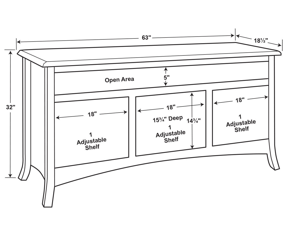 Dimensions: 63″W x 18½”D x 32″H