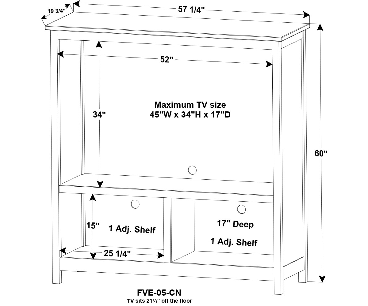 Dimensions: 57¼”W x 19¾”D x 60″H