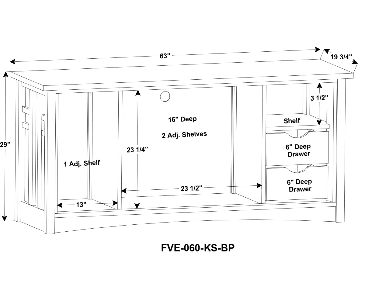 Dimensions: 63″W x 19¾”D x 29″H